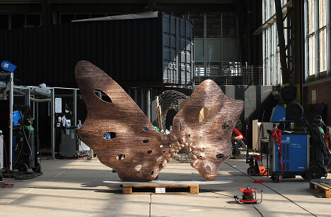 The Butterfly Screen – designed by Joris Laarman Lab – one of the experimental sculptural work MX3D produced, is the first in a collection of sculptural screens varying in sizes, geometries and materials. Even multi-material gradients from bronze to steel are in the planning. The computationally generated esthetics of the screens are not just pleasing to the eye but are also pushing the boundaries of our technology. 3d printing on this scale is unexplored territory so we are learning as we develop new sculptural work.