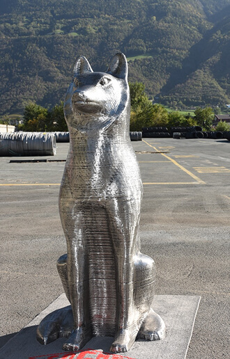 A stainless steel guardian of nature, Wolf embodies strength, resilience, and renewal. This striking sculpture reimagines the iconic Cracking Art figure in metal, balancing sleek industrial precision with the collective’s message of sustainability and renewal.